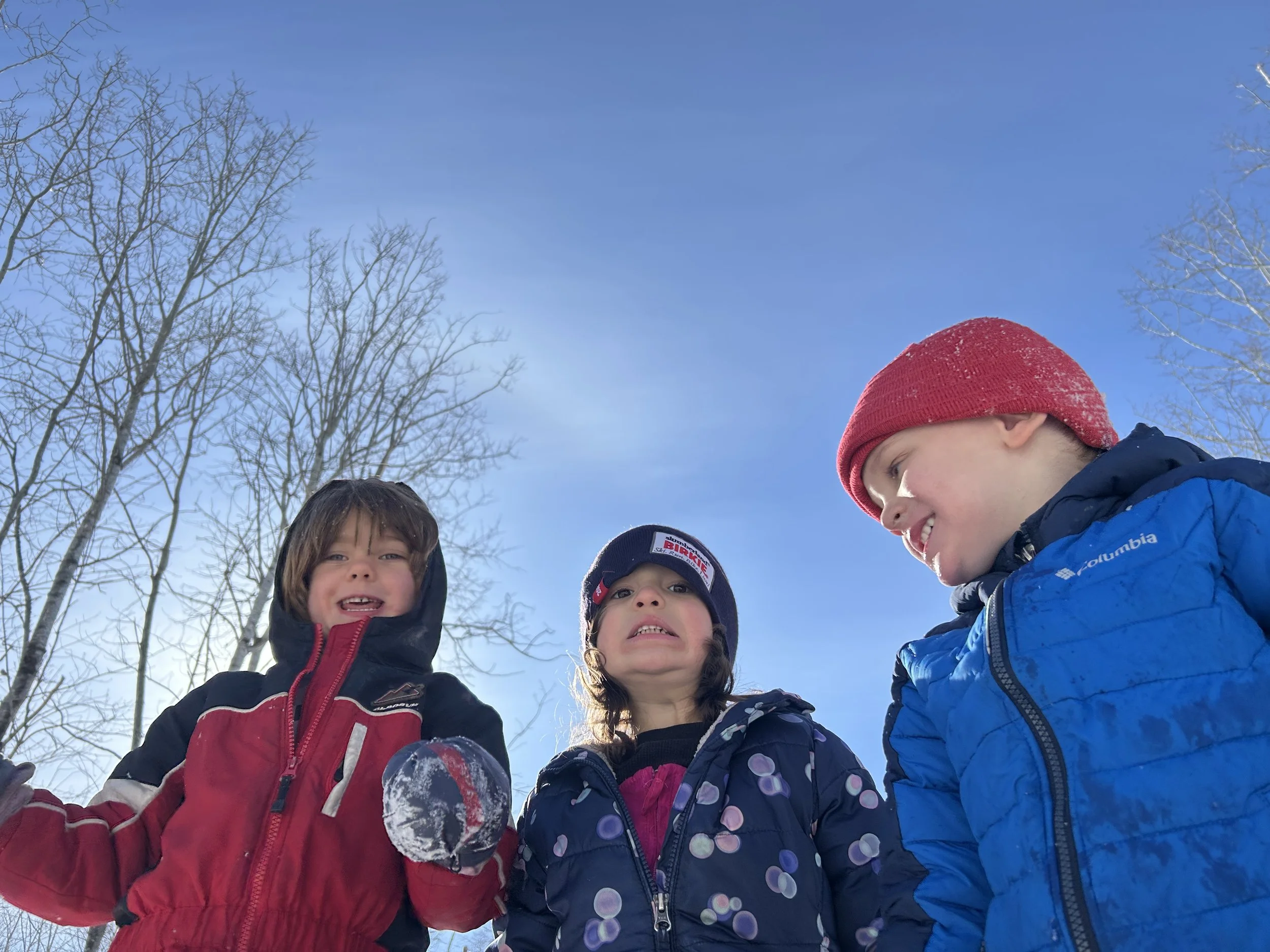 At the Ely Adventure School, we spend at least 40% of our day outside in all but the most inclement weather. Our school is situated on about 5 acres of forest. Our main outdoor classroom is located between our driveway and a power cut. This bit of forest helps provide clear boundaries for children at the same time as providing wonderful large and fine motor skill building opportunities. The woods have both open areas and densely paced vegetation creating nice pathways. With a mix of both deciduous and coniferous trees, phonology is an ever-present lesson! In the summer we have tons of raspberries, blueberries, and even strawberries. Birds make their nests in our outdoor classroom and we have watched a number of baby chicks being raised. The rocks and trees provide an endless source of building templates and martials. In the fall, the leaves make crinkly piles for us to play in. Our hoop house is still producing the last of the vegetables, such as squash and tomatoes, and the colder weather helps children practice putting on jackets and mittens. The winter brings piles of snow prime for building and sculpting, Children can prefect their skills in getting dressed for the outdoors and animals tracks are everywhere for us to follow and explore what animals do. Spring comes, and we are able to watch the amazing process of the world turning green again but before that happens, we tap the trees and collect sap to cook down into maple syrup! Also, we have endless mud. I don’t think I need to explain more.